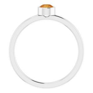 Anillo redondo de 4 mm de plata de ley rodiada con imitación de citrino