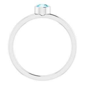 Anillo redondo de 5 mm de plata de ley rodiada imitación aguamarina