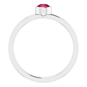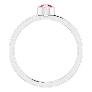 Anillo Redondo De Turmalina Rosa Imitación De 4 Mm En Plata De Ley Rodiada