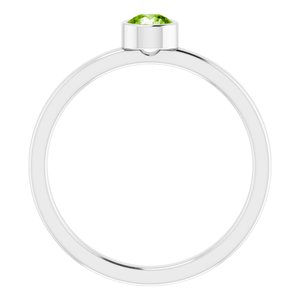 Anillo redondo de 4 mm de plata de ley rodiada con imitación de peridoto