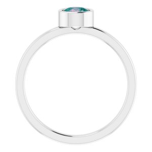 Anillo redondo de 5 mm de plata de ley rodiada con imitación de Alejandrita