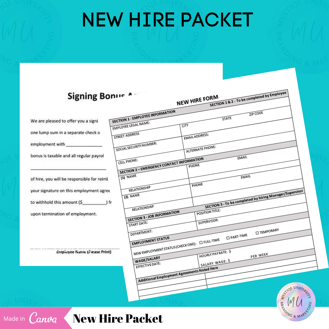 Este paquete completo de paquetes para nuevos empleados incluye todo lo siguiente: