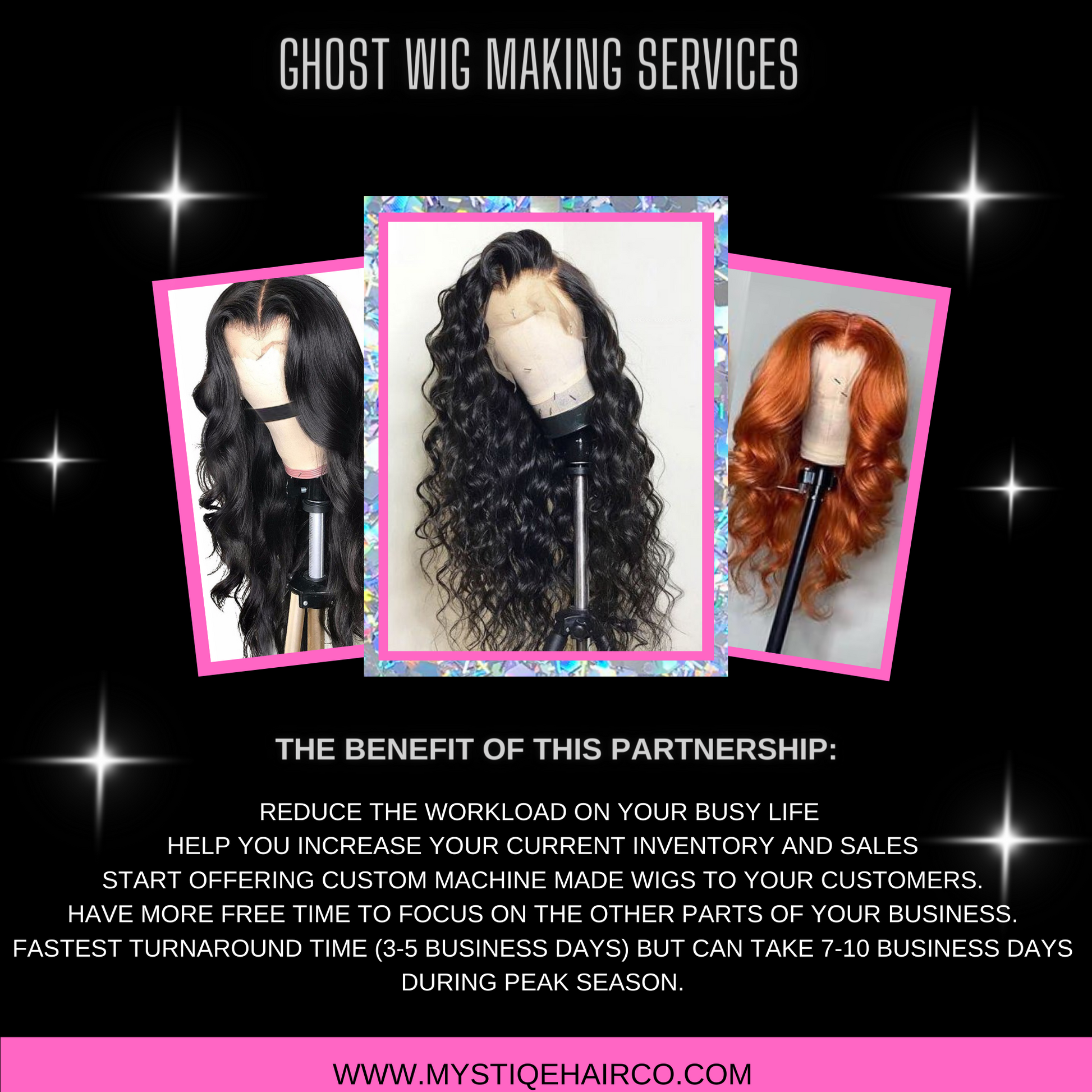 Mystiqe Hair Co. ofrece un servicio de fabricación de pelucas al por mayor donde construimos pelucas para cabello y vendedores de pelucas sin anunciarnos como el fabricante de pelucas (CONFIDENCIALIDAD).