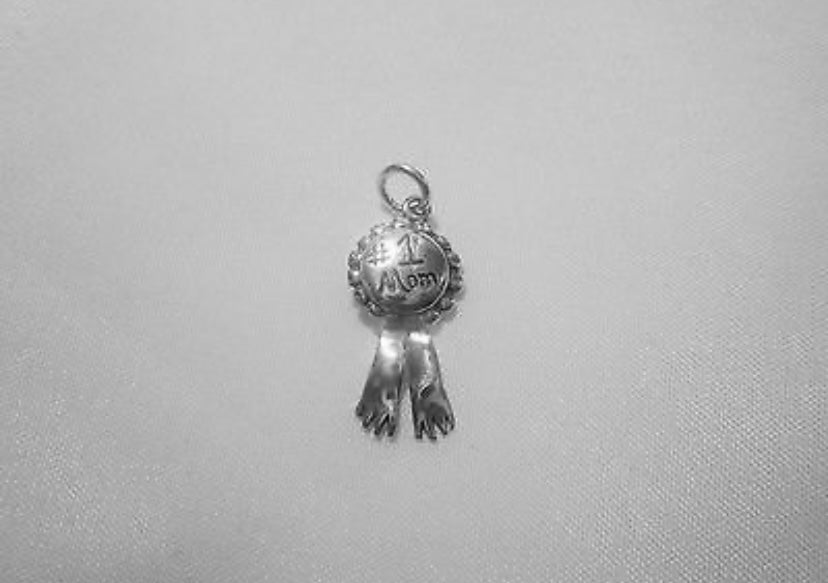 Dije plano de plata de ley .925 con el estilo de una cinta con "#1 Mom" insertado en el frente.