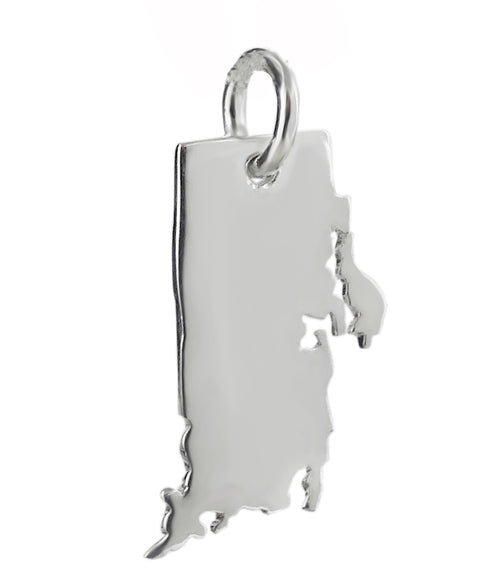 El dije del estado de Rhode Island se puede usar como colgante o agregarlo a una pulsera con dijes. El dije está hecho de plata de ley 925 y viene con una anilla soldada.