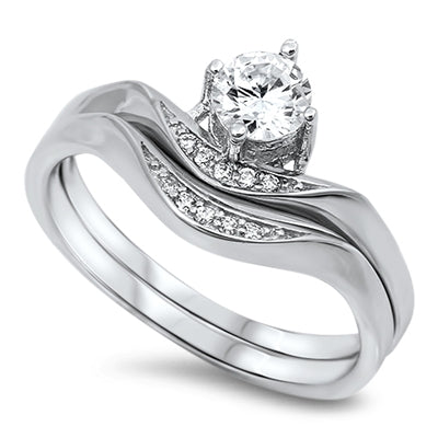 Conjunto de alianza de boda con ondas solitarias en plata de ley