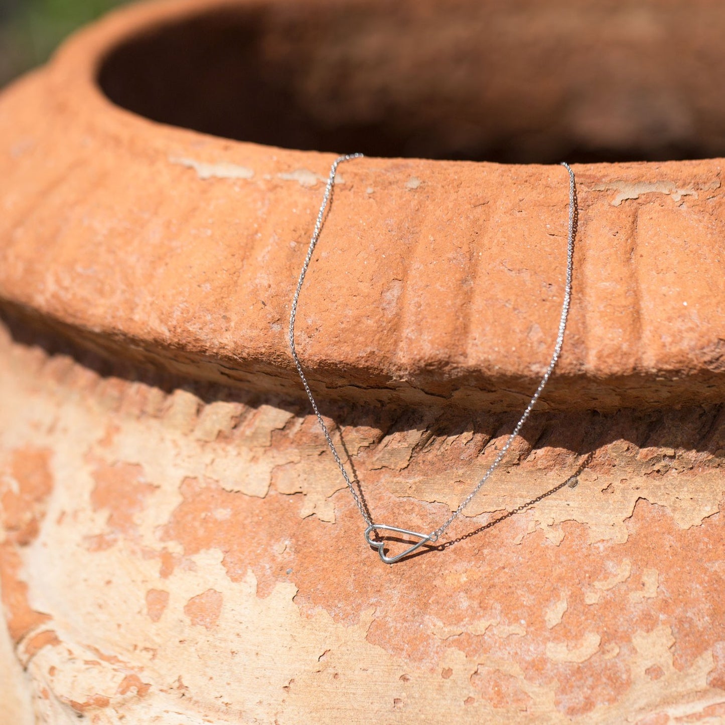 16" + 2" Rhodium Plated Sideways Heart Necklace