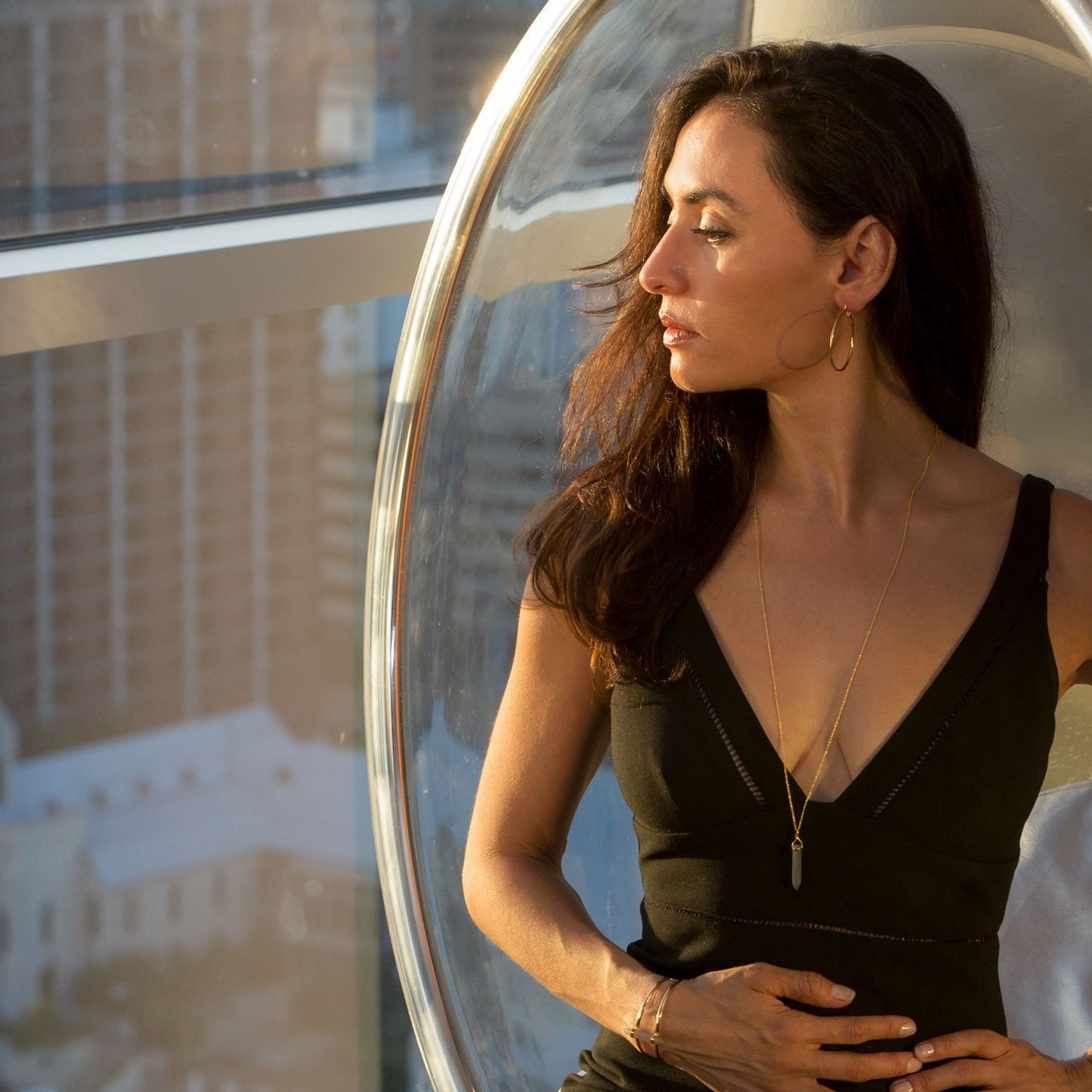 14 Karat Gold Plated Spike Pencil Cut Gray Moonstone Necklace