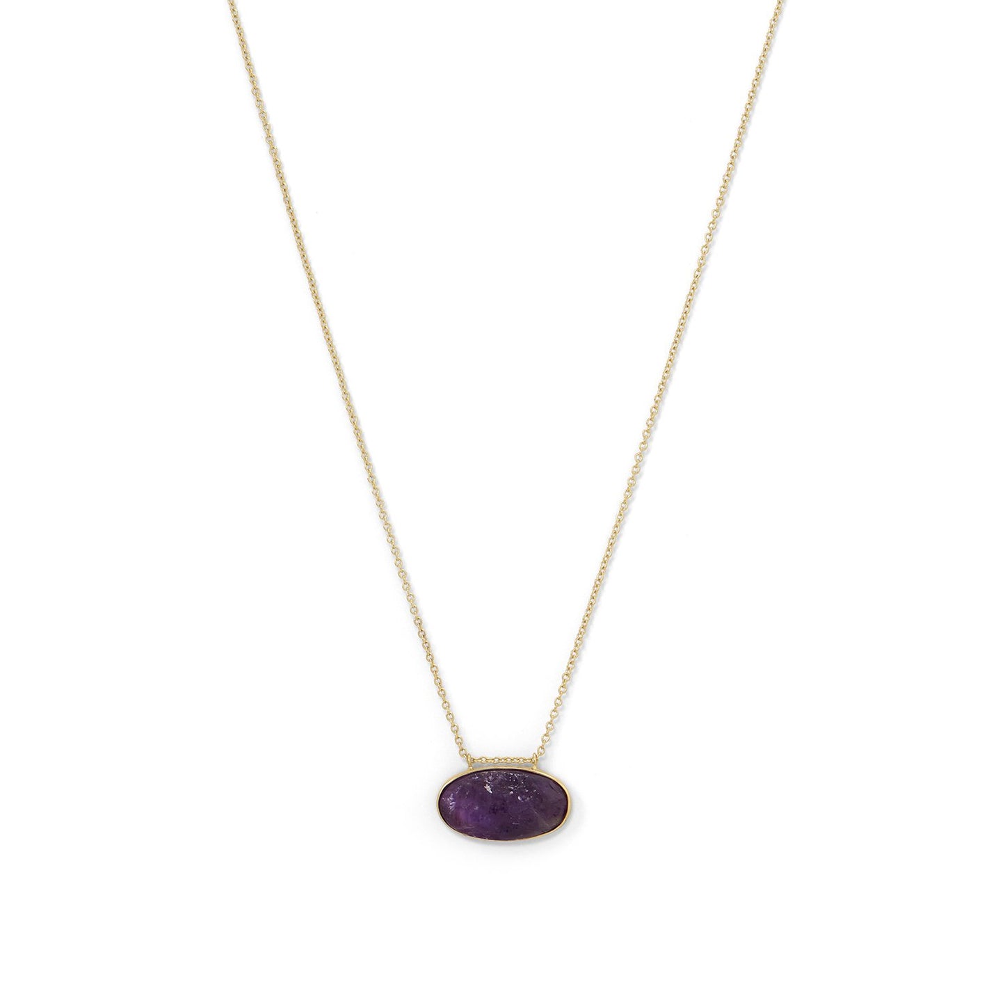 14 Karat Gold Plated Rough Cut Amethyst Slide Necklace