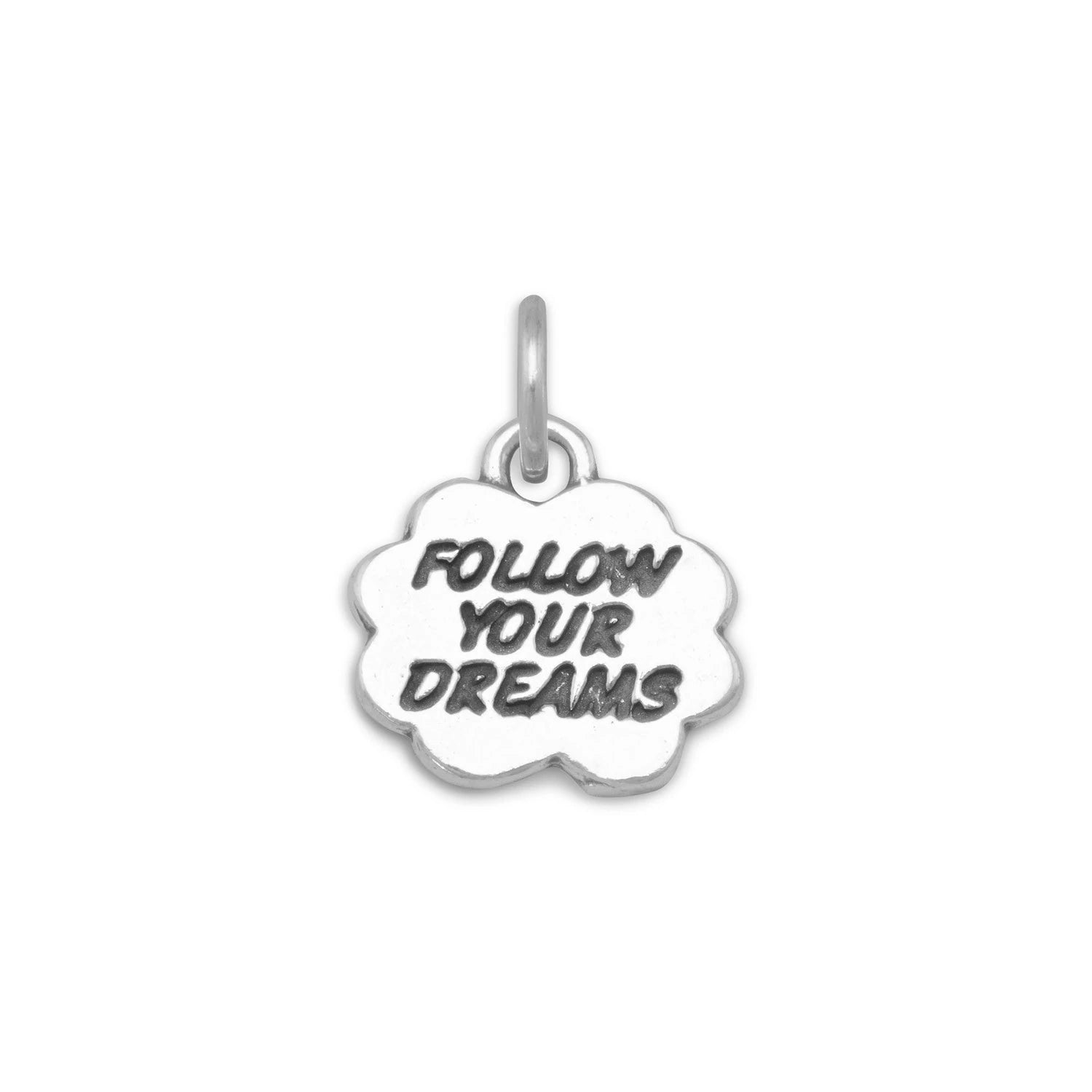 Cloud shape charm with "Follow Your Dreams". Charm measures 20mm x 13mm.