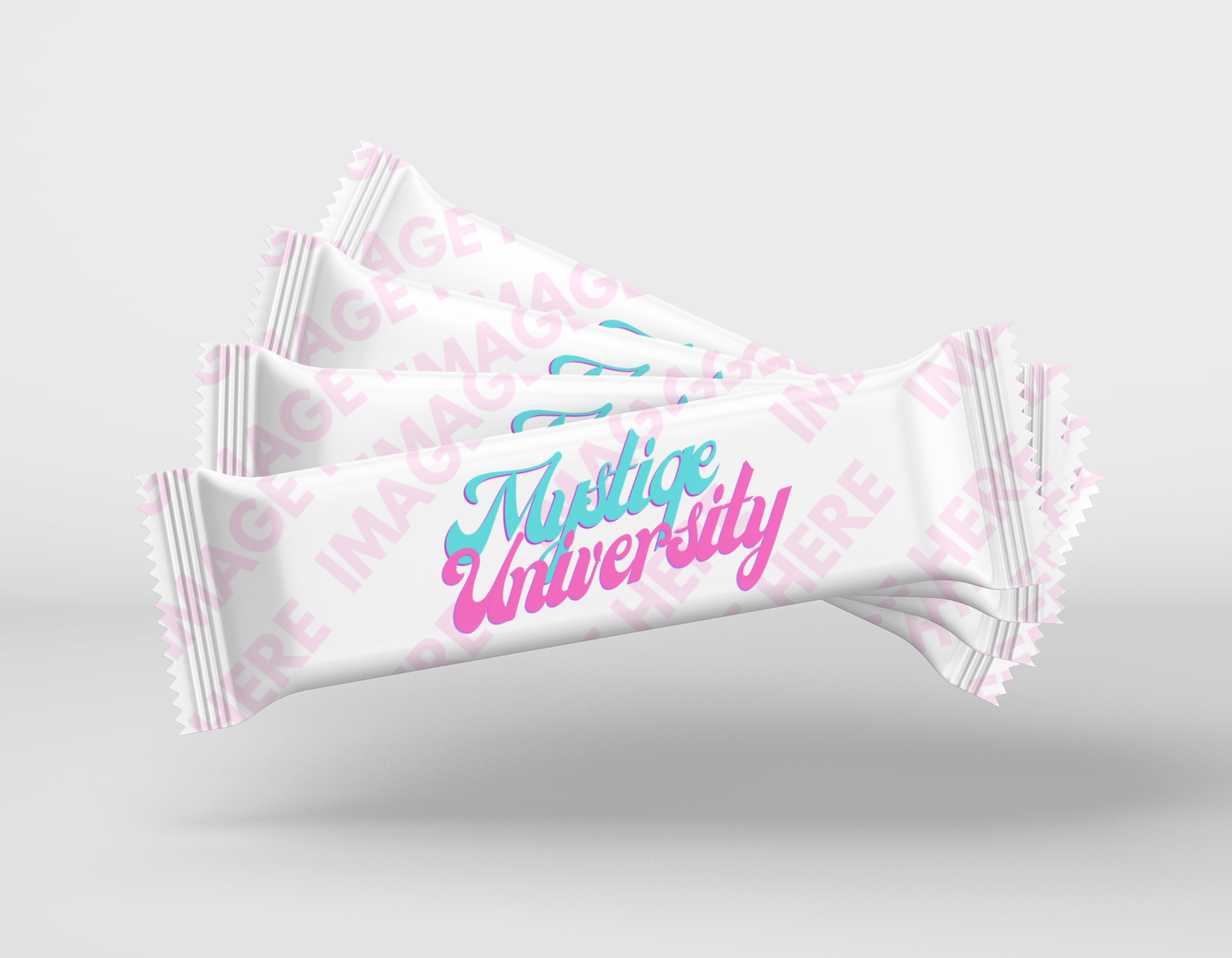 Chocolate candy bar packaging mockup featuring 4 hovering bars.