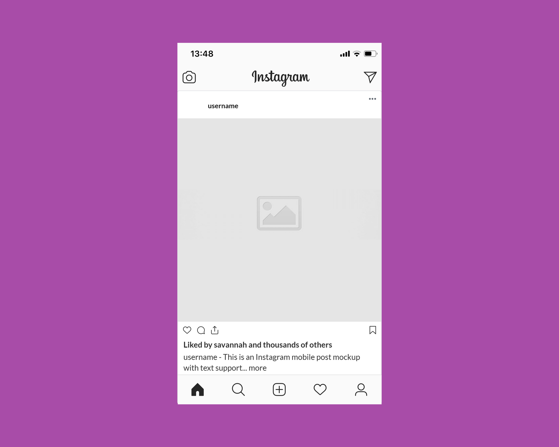 Create an Instagram post mockup in no time. Simply drag and drop your post image onto the placeholder and customize the texts. Download the final image as JPG or export as PNG with transparent background.