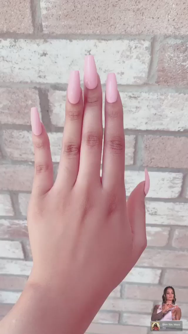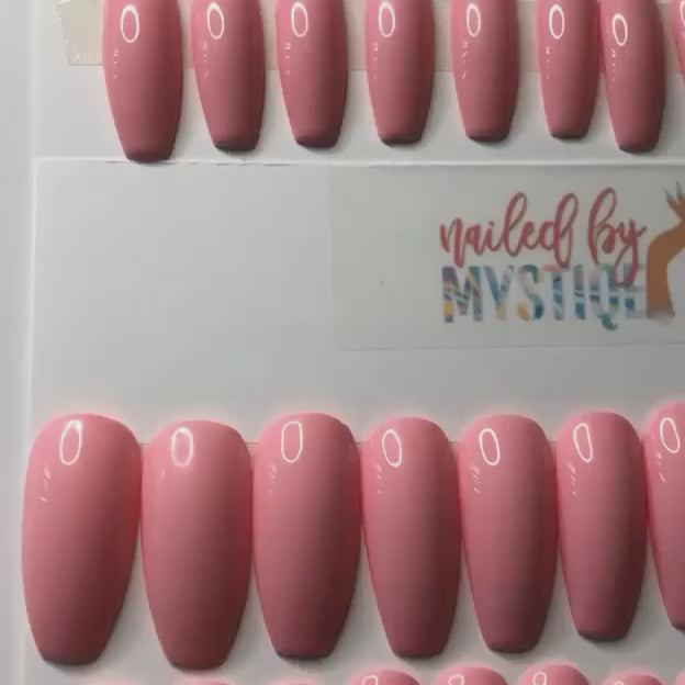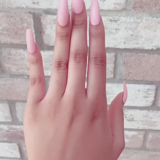 Our “Pretty In Pink” set features an light pink nail in a medium Coffin shape.