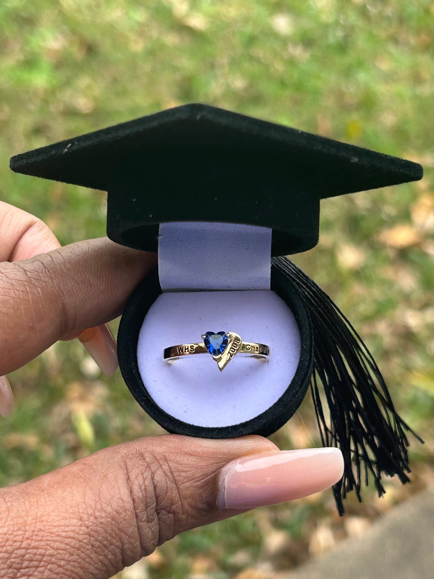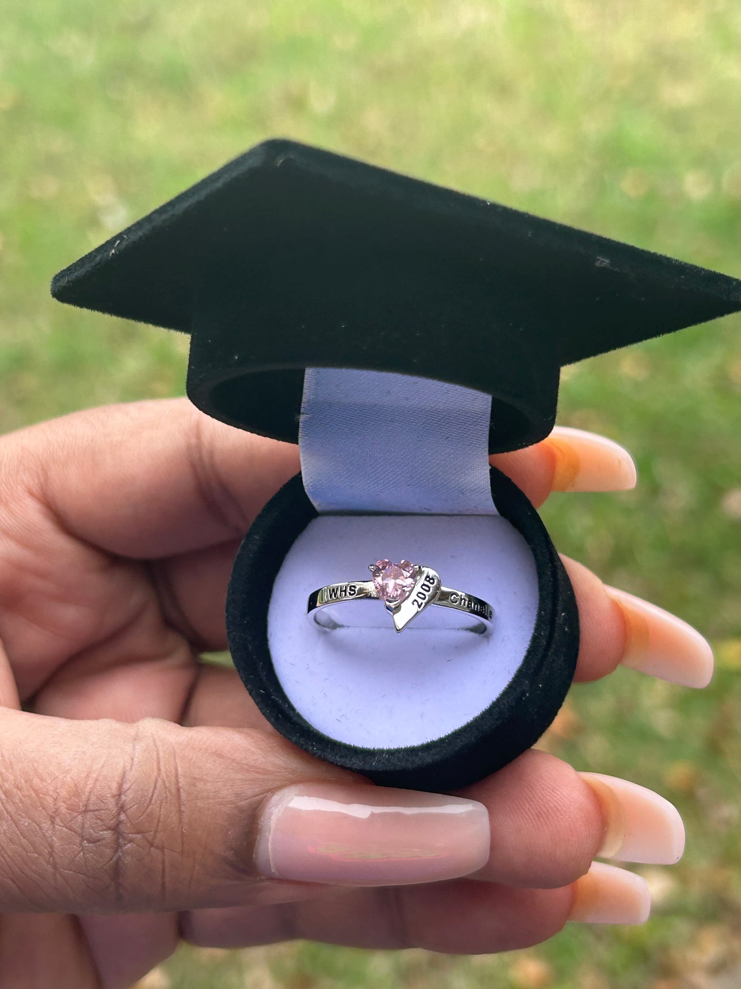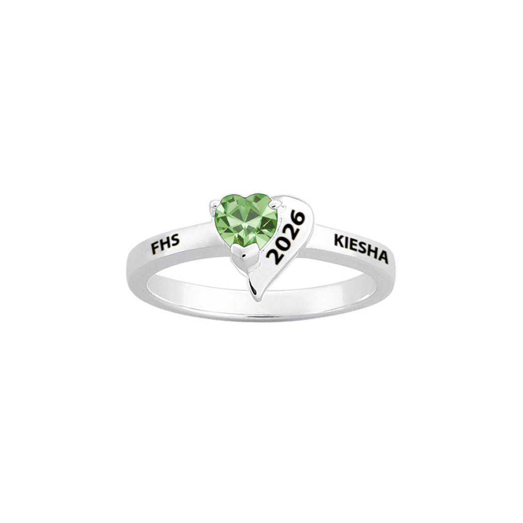 Does your heart belong to your high school? If so, this Freestyle exclusive from Mystiqe Boutique is the perfect class ring for you. Slim Sterling Silver band is personalized with your school name or text of your choice, Austrian crystal birthstone or school color, graduation year and your name. Choose a school name (up to 10 letters), birthstone, graduation year (4 digits), and your name (up to 10 letters).