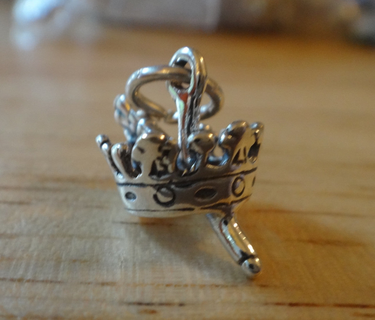 This New sterling silver is a fancy crown with a septor. It is 1.7 cm wide and long with septor and 3 dimensional. It is very detailed front and back!