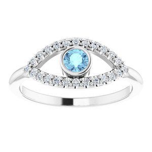 Sterling Silver Aquamarine & White Sapphire Evil Eye Ring