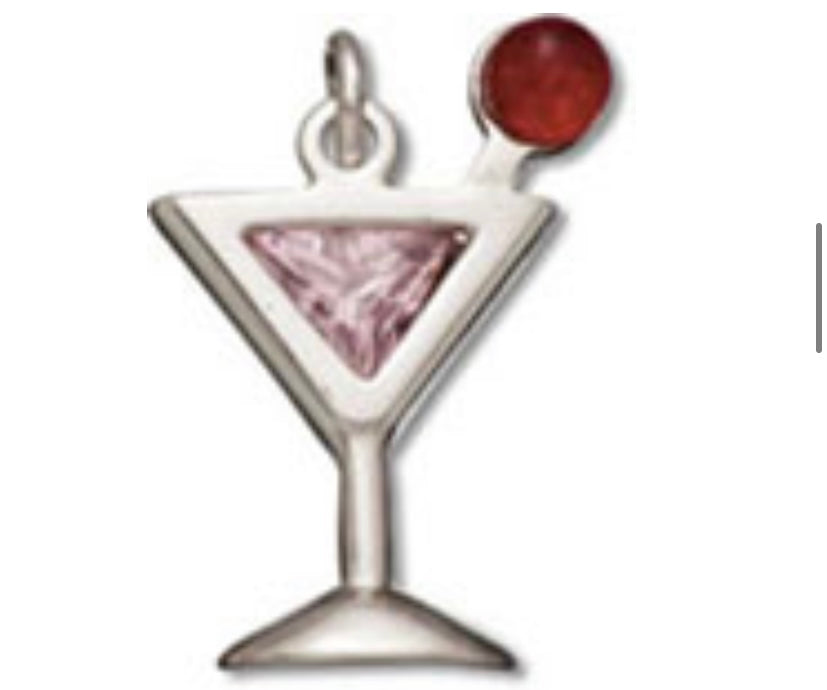 Sterling Silver Cosmopolitan Drink Crystal Charm