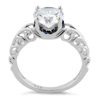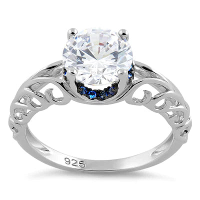Sterling Silver Swirl Design Clear and Blue CZ Ring